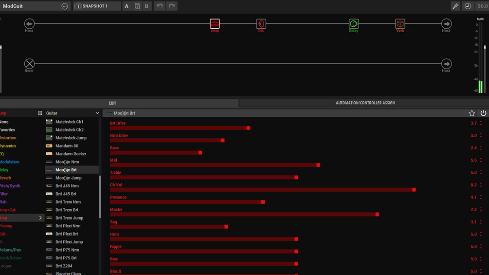 Rien de très compliqué ici, j'ai utilisé l'un des nouveaux amplis, le Moon Bright, avec un delay et un reverb. Avec une Strat on se rapproche d'un son Hendrixien ;)